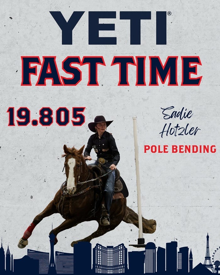 Sadie Hotzler of Jackson won Tuesday’s 17U Pole Bending go-round with a time of 19.805 seconds at the Junior National Finals Rodeo.